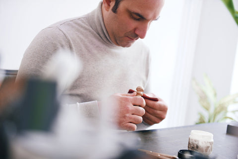 Jedes Produkt wird auf Bestellung in sorgfältiger Handarbeit lokal in unserer Hamburger Ledermanufaktur hergestellt und mit traditioneller Sattlernaht vollendet. Die aktuelle Herstellungszeit beträgt 2-3 Wochen.